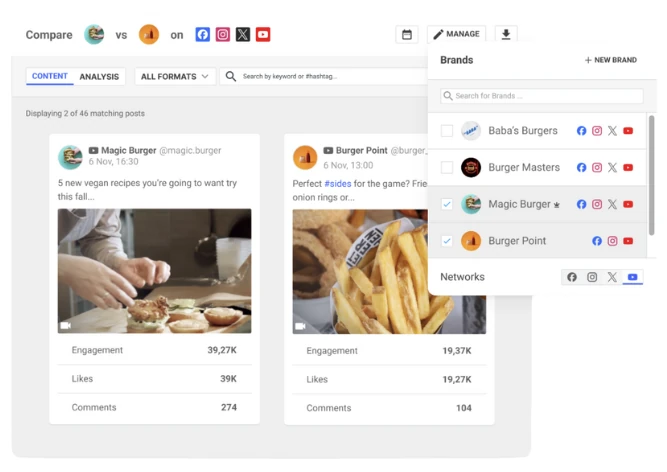 Brandwatch offers a comprehensive suite of tools designed to streamline social media benchmarking. Their platform enables you to monitor and compare social metrics from your brand and competitors, providing real-time insights into social media strategies. With Brandwatch’s Benchmark tool, you can assess your social media performance, track competitors’ strategies, and analyze key engagement elements such as posts, campaigns, and hashtags. (brandwatch.com)