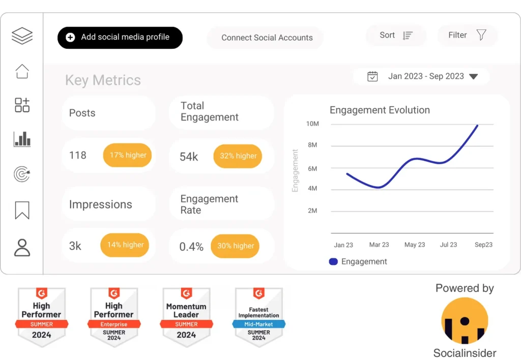 High Performer social media analytics tool for brands and businesses.